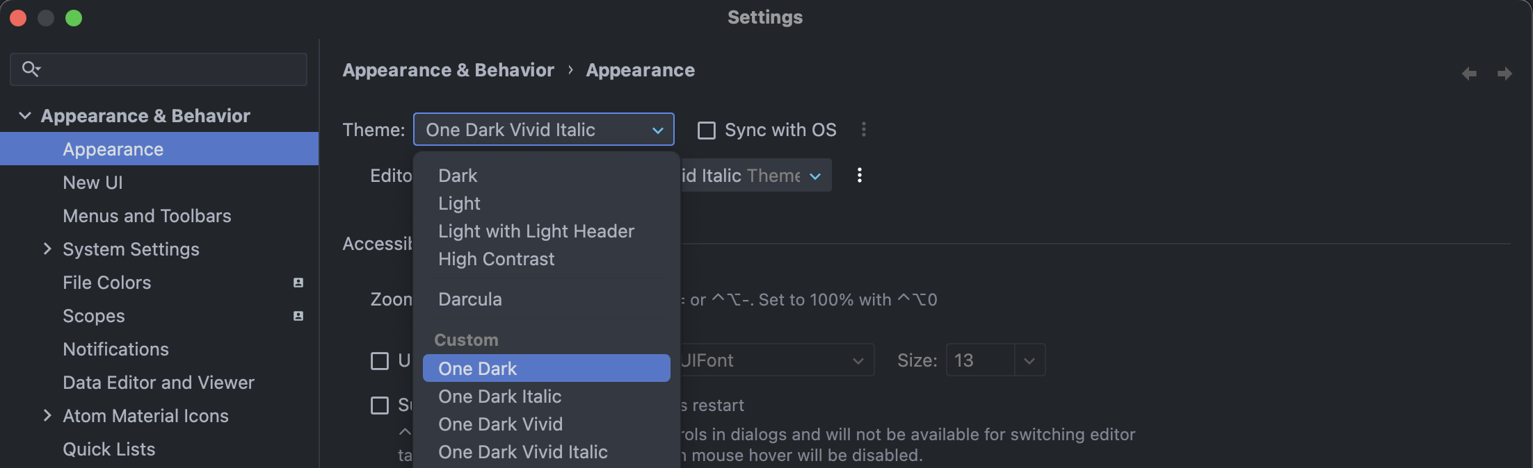 이 중에 One Dark Vivid Italic을 사용하고 있습니다.