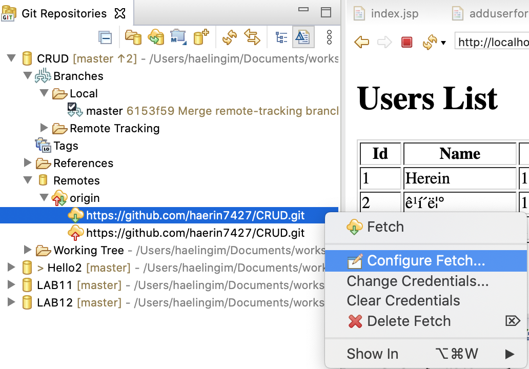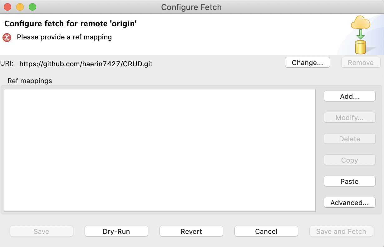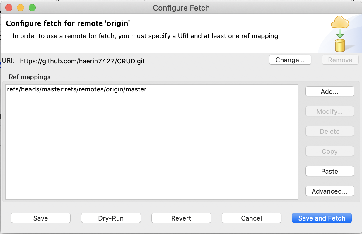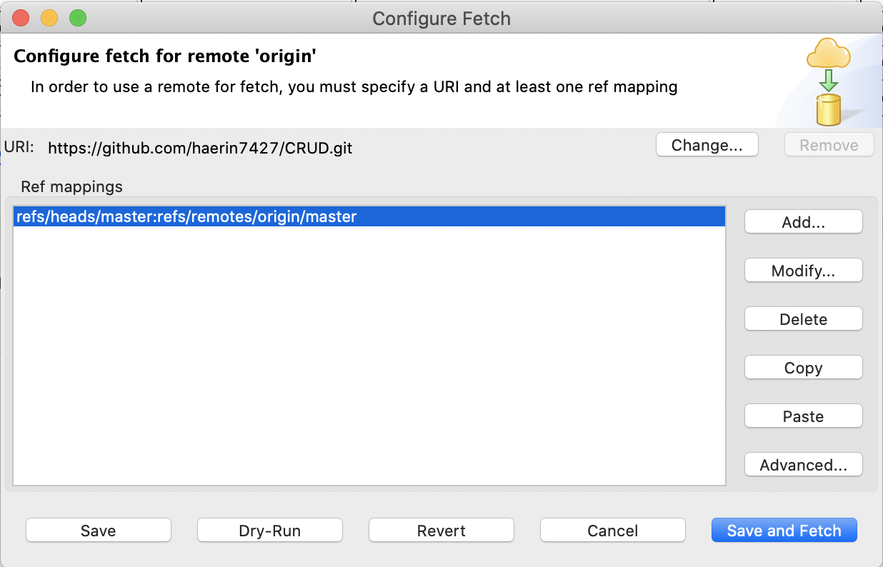 1. Git repositories에서 올리려고 했던 프로젝트 내 Remote > origin에서 마우스 우클릭으로 configure fetch click!