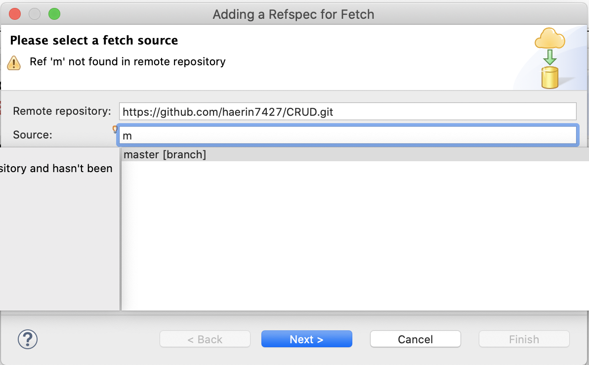 3. 빈칸이 Source에 m을 치면 밑에 뜨는 master click > next!