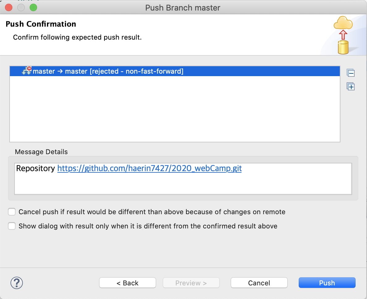 push 오류 : rejected - non-fast-forward