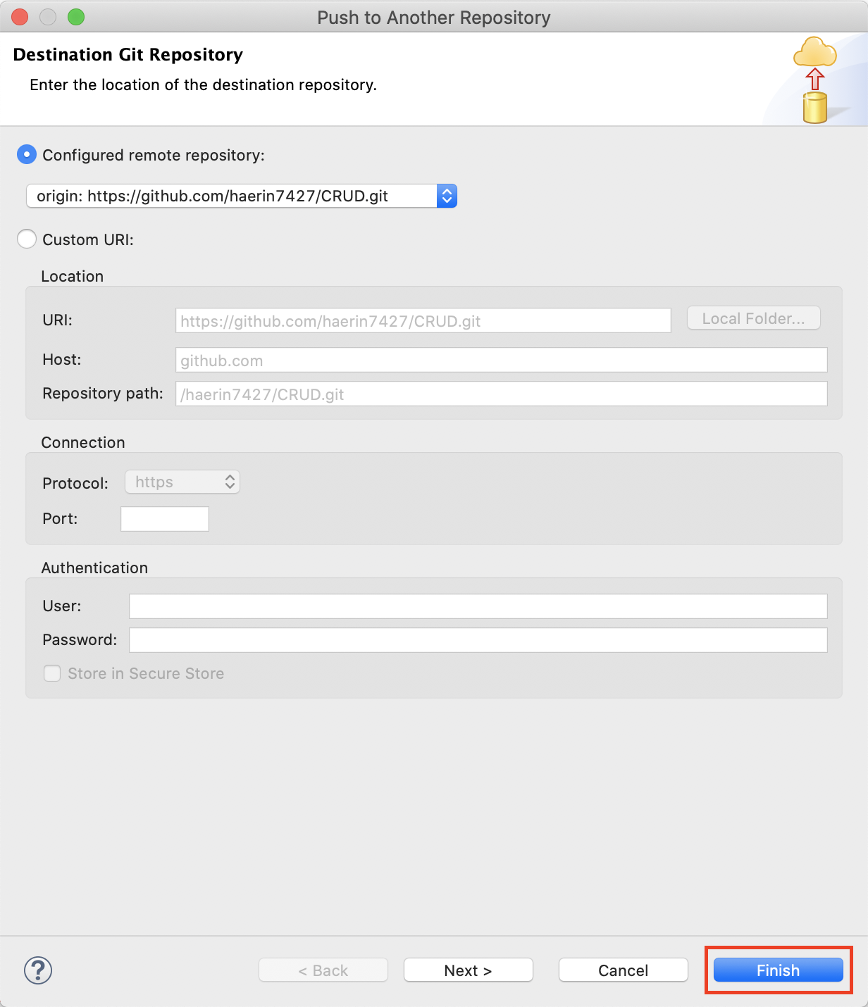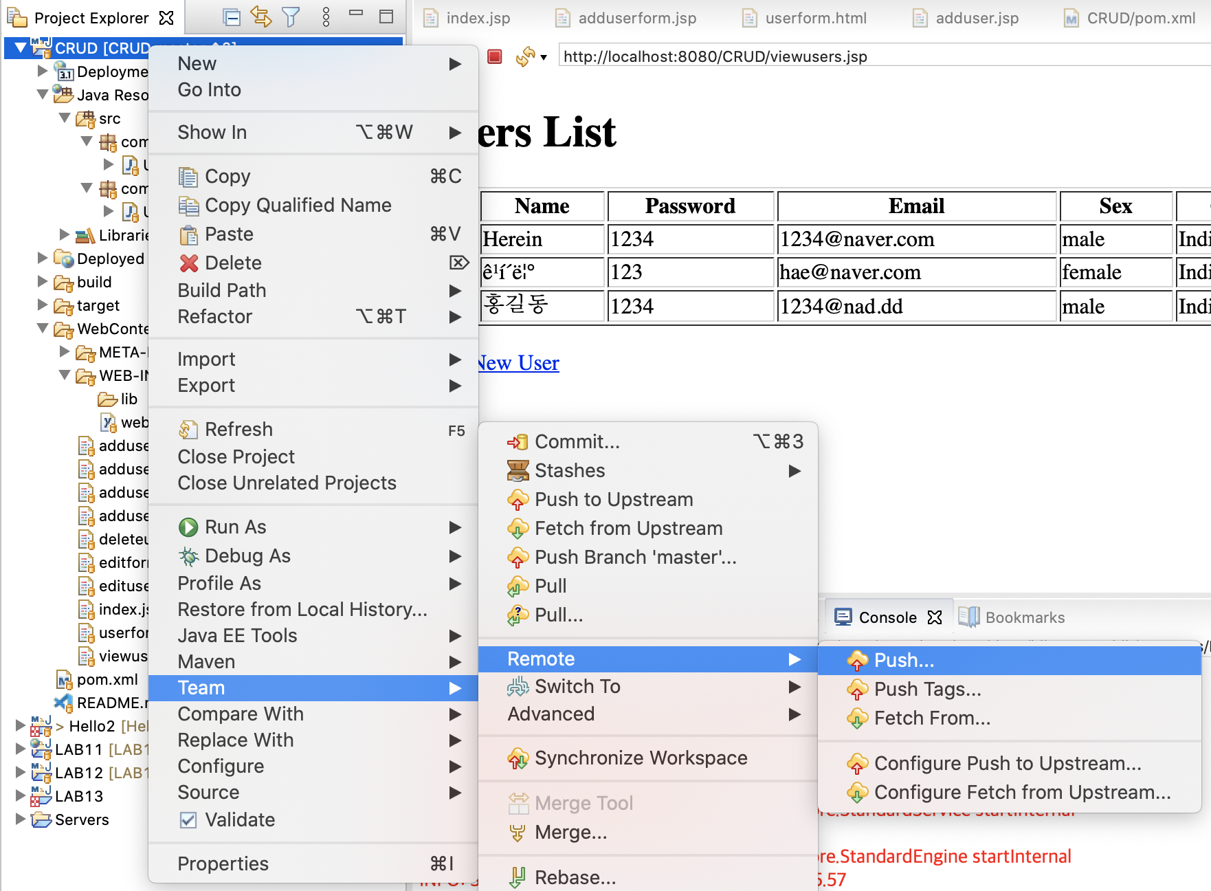 9. project expolorer에서 프로제트명 우클릭 > Team > Remote > Push click