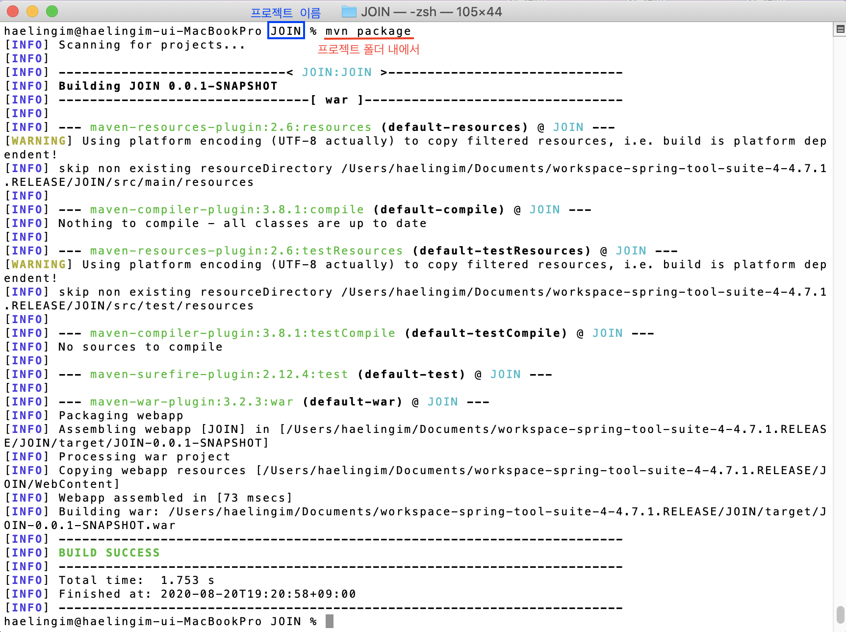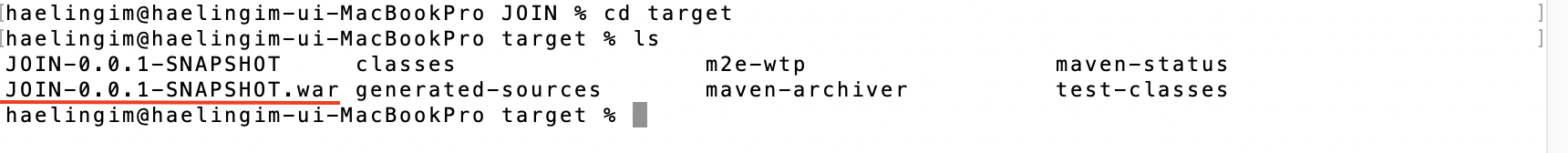 * 앞의 단계가 완료되면, 프로젝트 폴더 내 target 폴더로 이동하면 .war 파일 확인 가능
