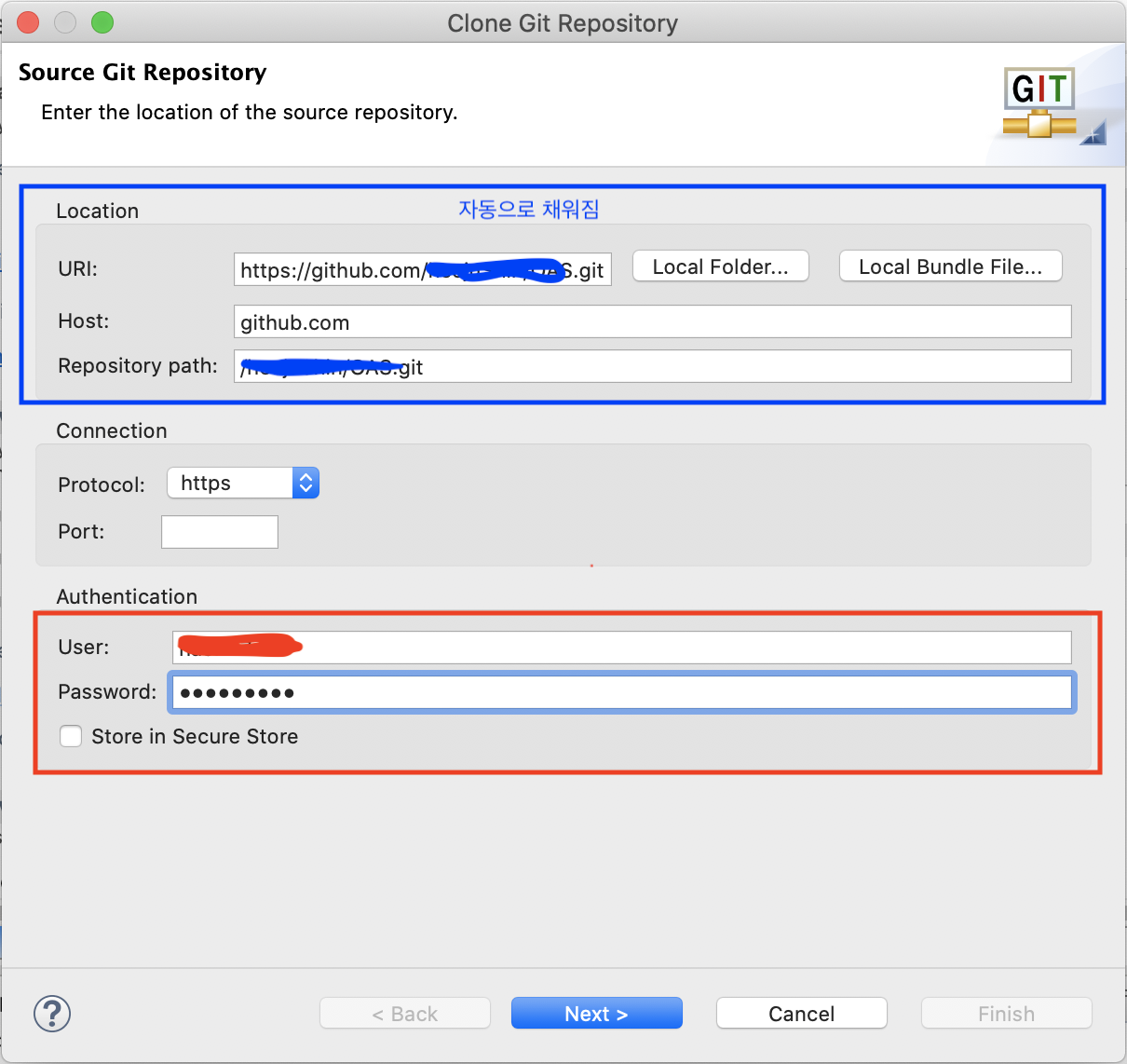 링크는 자동으로 채워지고 github 아이디 비번 입력