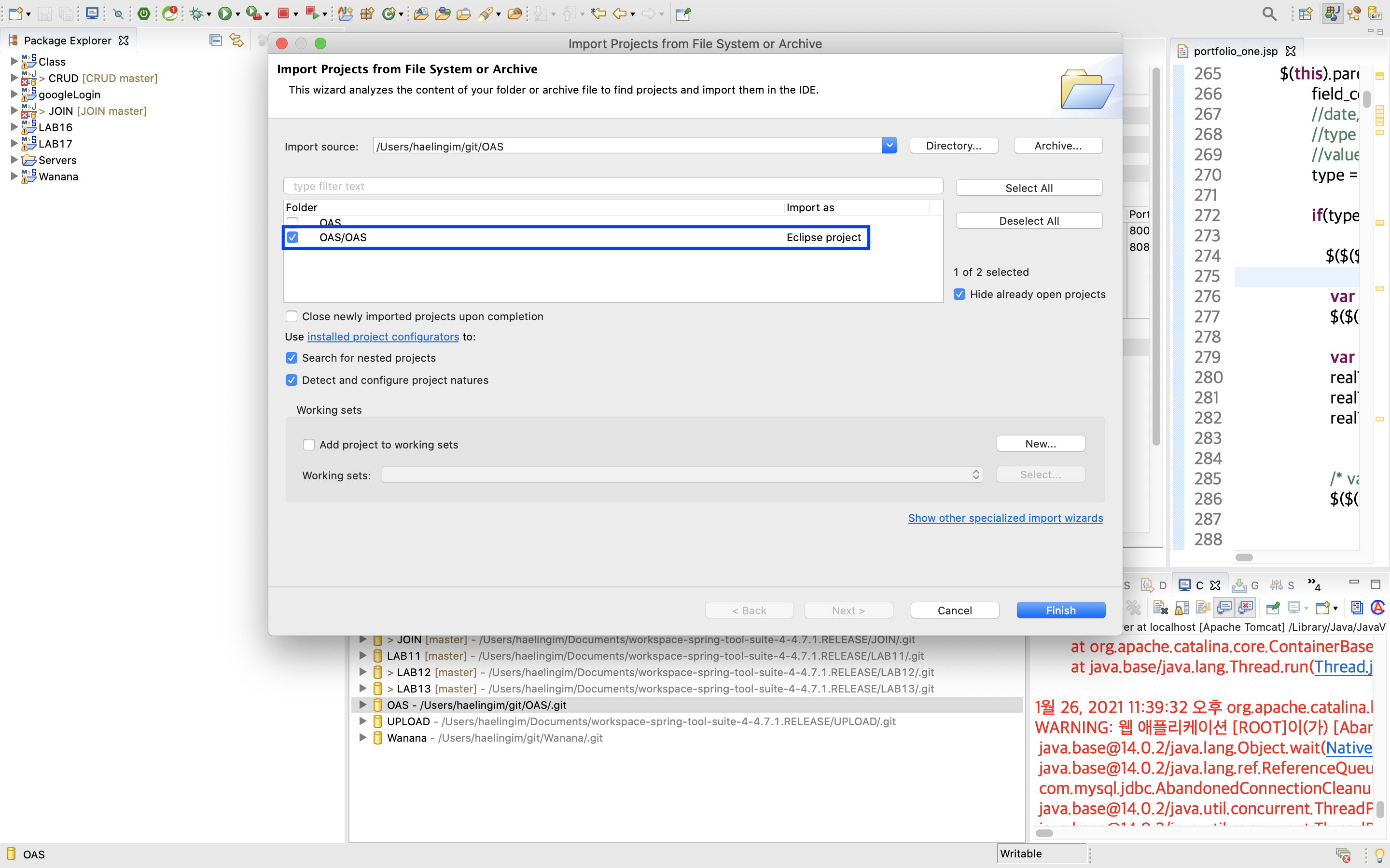 github repository에 clone이 되면 해당 프로젝트를 우클릭해서 import