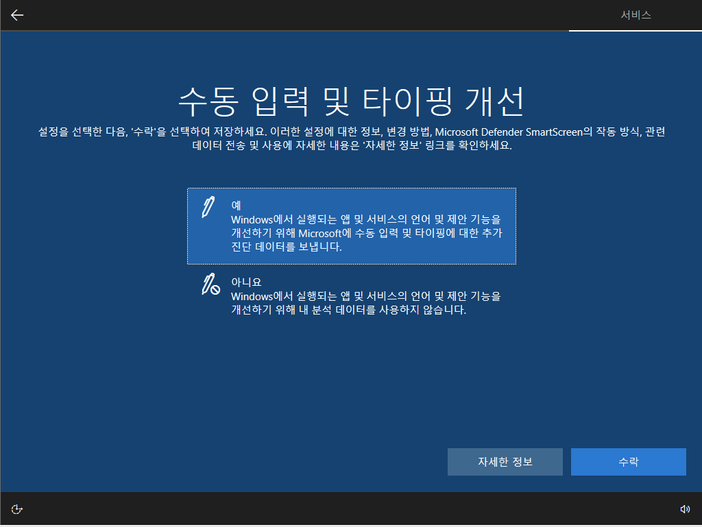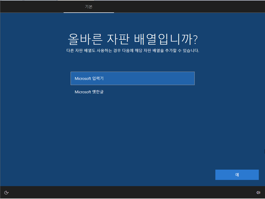 Microsoft 입력기를 선택하고 예를 클릭합니다.
