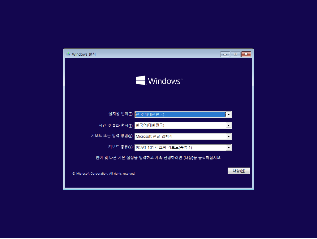 다음을 클릭합니다. (저는 기본값으로 선택)