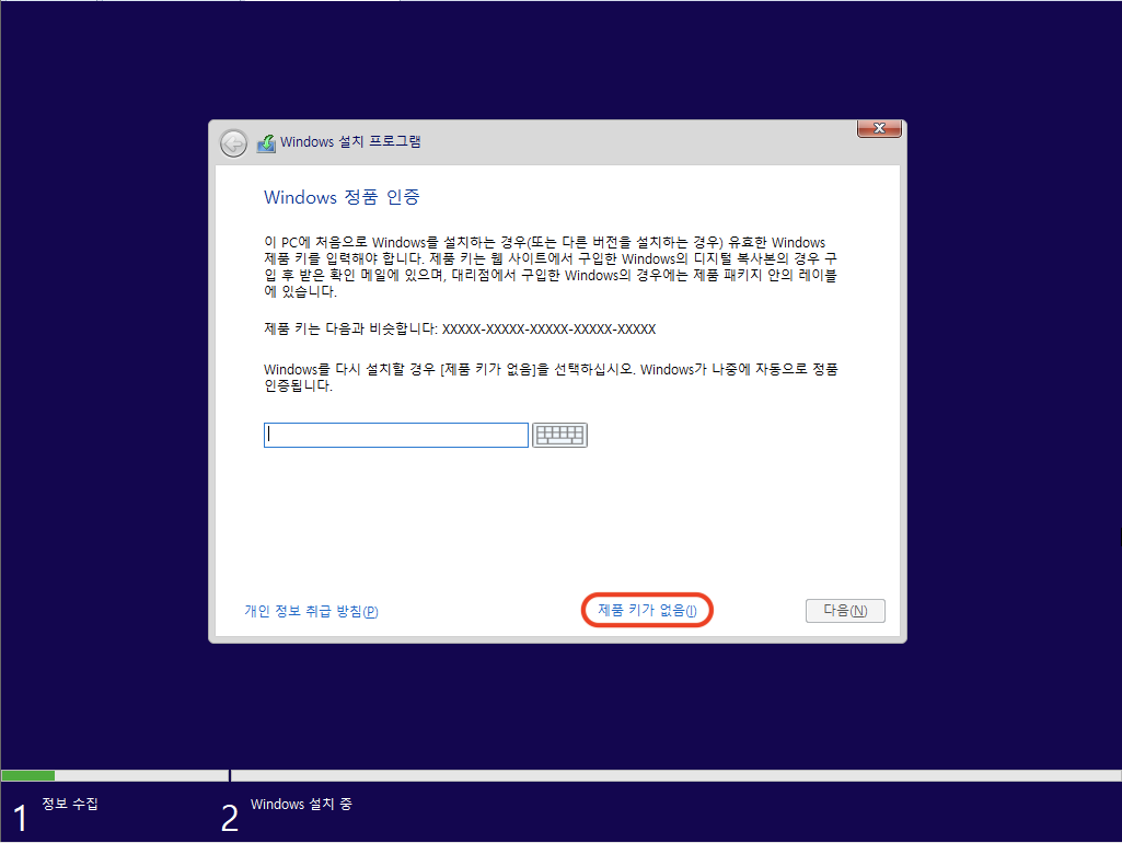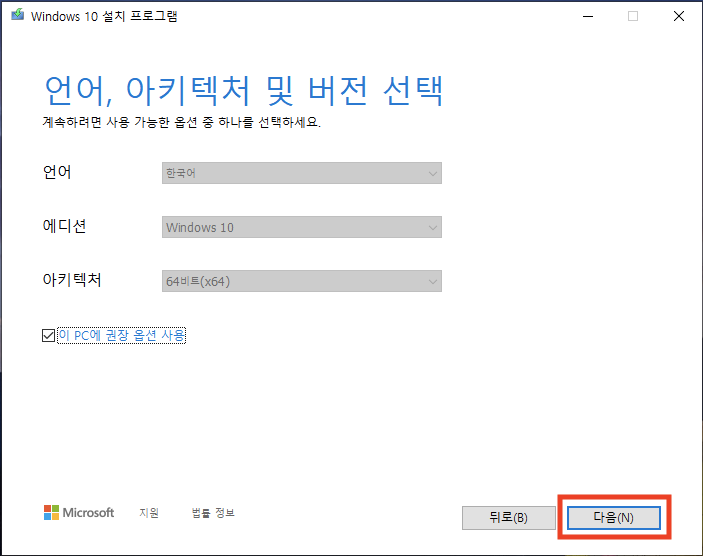 Window 10 pro를 선택하고 다음을 클릭합니다.