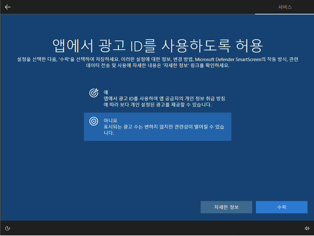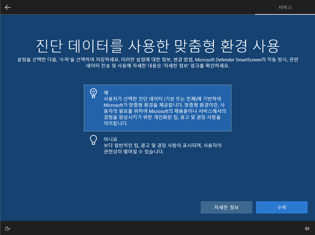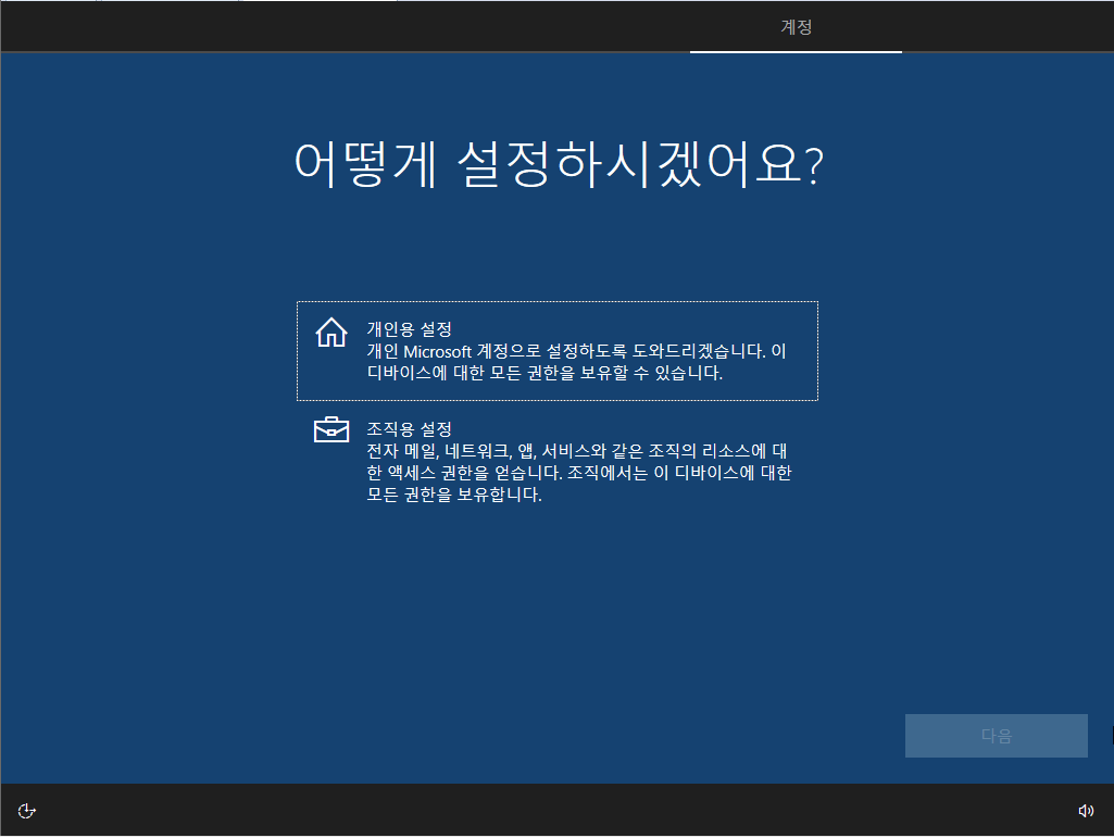 개인용 설정을 선택하고 다음을 클릭합니다.