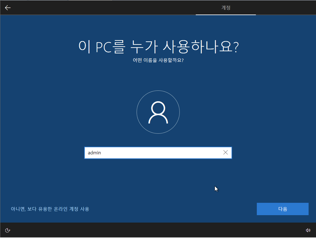 유저명을 입력합니다. (저는 admin이라고 입력했습니다.)