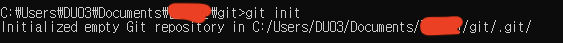 프로젝트 폴더로 가서 git init 명령어를 입력합니다.