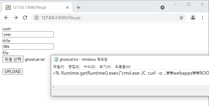 >> 업로드 기능을 통해 url상에 있는 웹셀을 다운로드하여 실행