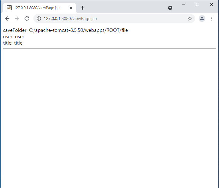 아래의 프로젝트를 다운로드하여 file.jsp, viewPage.jsp를 apache-tomcat-8.5.50/webapps/ROOT 폴더에 추가하고 cos.jar를 apache-tomcat-8.5.50/lib에 추가합니다.