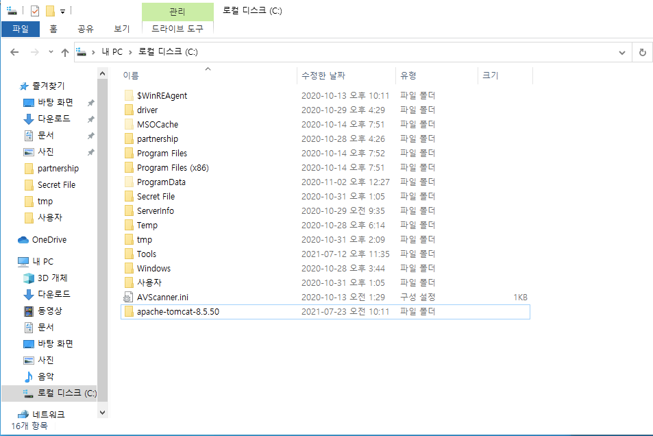 압축을 풀고 설치하고 싶은 위치로 이동합니다. 저의 경우 c:/로 이동하였습니다.