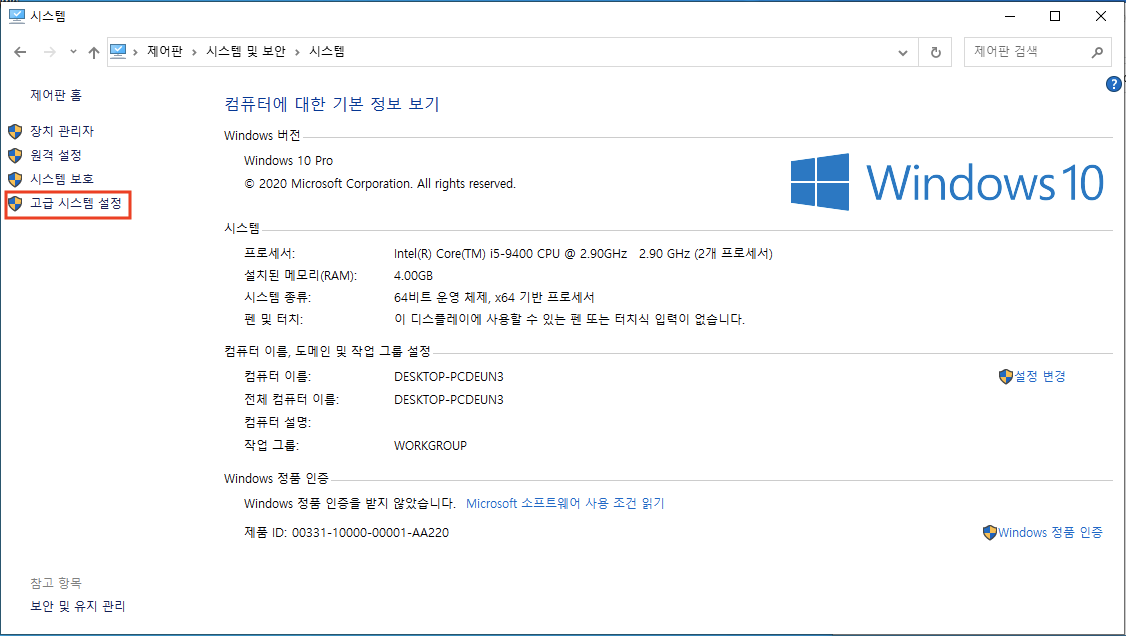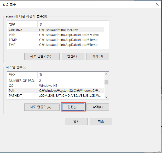 이번엔 시스템 변수 편집을 클릭합니다.