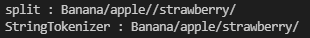 > split과 stringTokenizer의 빈문자열 처리 방법을 알 수 있다.