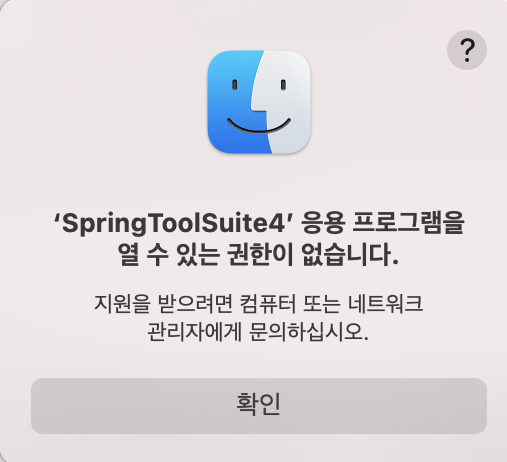 어느 날 SpringToolSuite4를 실행하려다, 응용 프로그램을 실행할 권한이 없습니다.라는 창을 본 적이 있다.