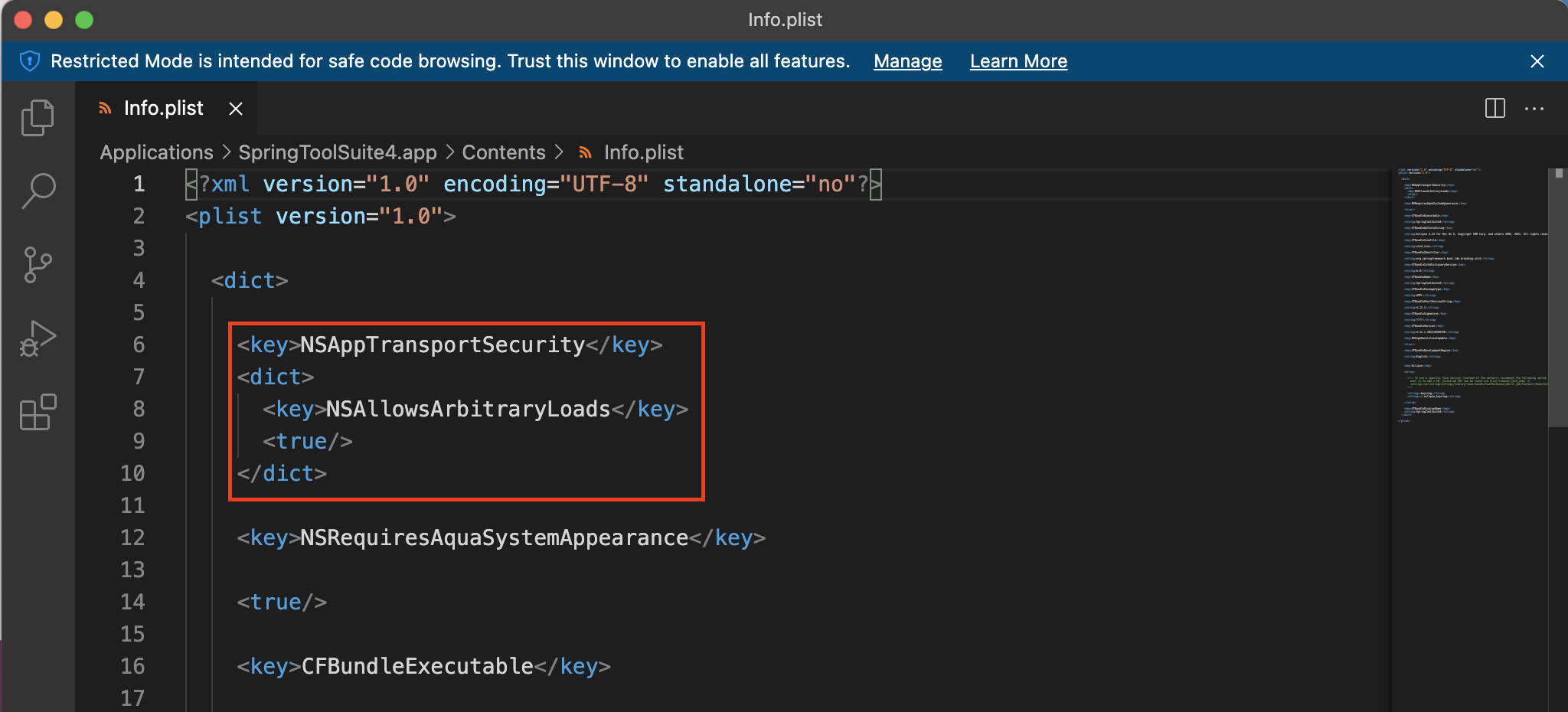 이때 info.plist를 수정하면 해결할 수 있습니다.