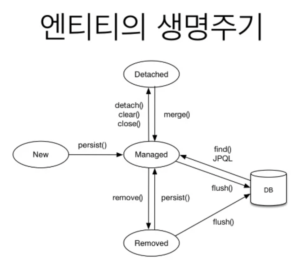 - 영속 (managed) : 영속성 컨텍스트에 관리되는 상태